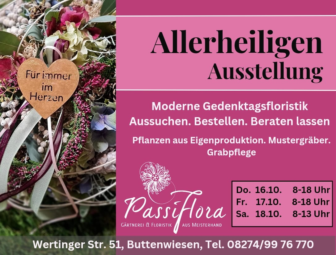 Bestellungen nehmen wir gerne telefonisch unter 08274/9976770, via E-Mail